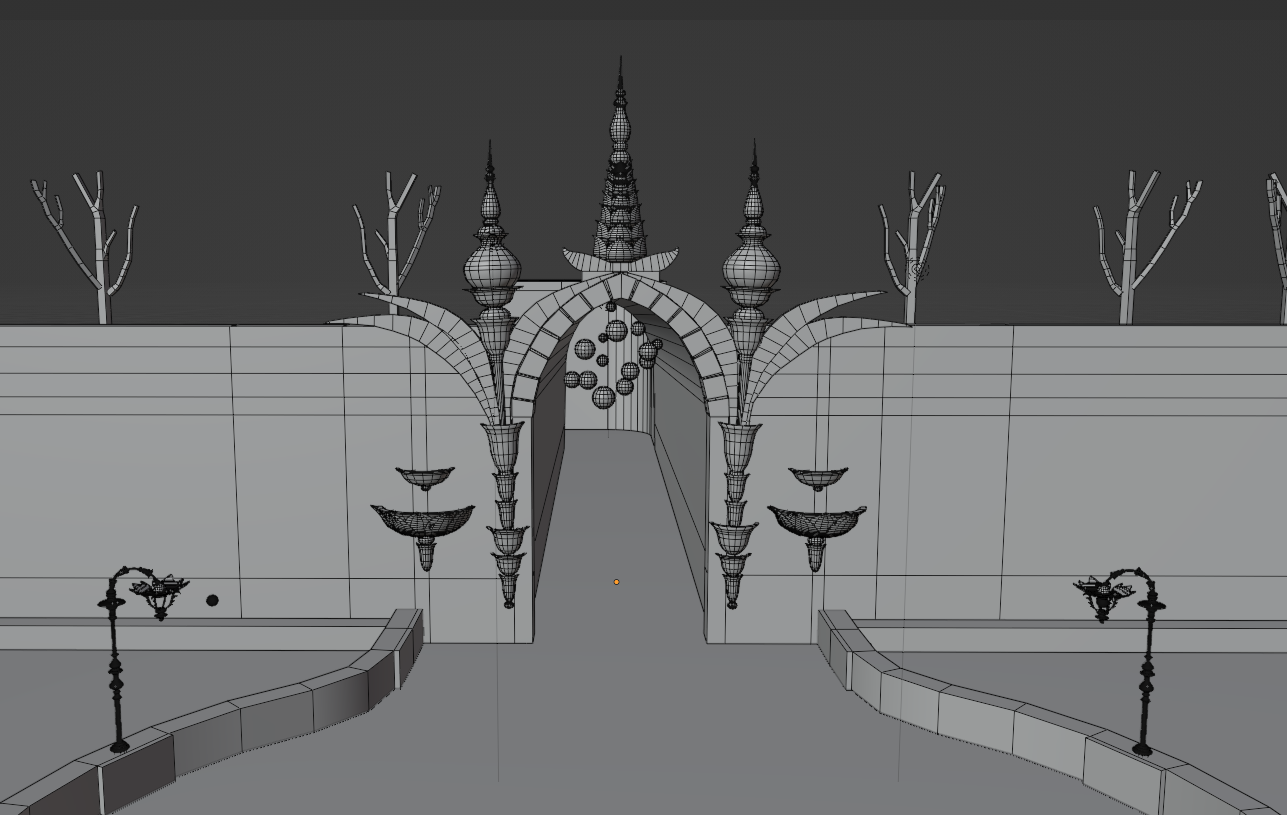 I also added a few more elaborate pieces like the street lamps to better reflect the theme park area